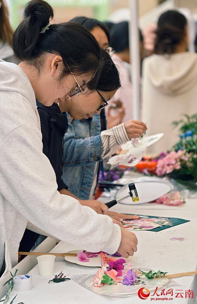 学生用中草药制作文创纪念品。人民网 尹馨摄