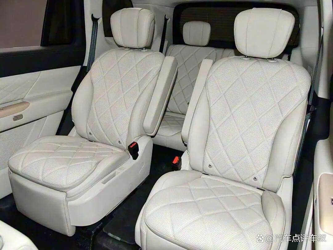 新车座椅采用2+2+2的六座座椅布局,二排为两个独立座椅,可前后移动,第二排提供小桌板和脚踏板,右侧为零重力座椅,后排还提供了全景天幕。前排和第二排座椅配备加热、通风、按摩功能。